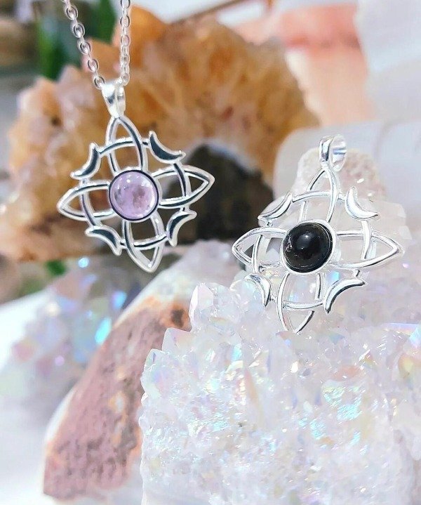 Dije de plata con piedra natural. Disponible en ágata negra y cuarzo blanco.