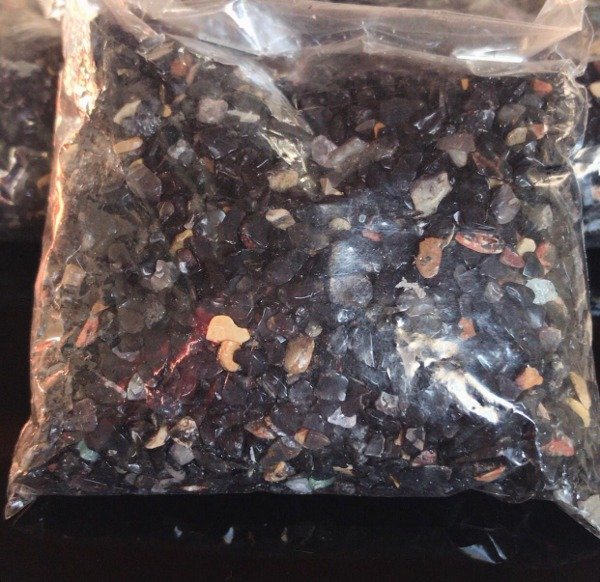 Bolsita de mini piedras de Ónix Negro. 100 gr por unidad. Ideales para decorar velas de soja y armado de elixires energéticos.