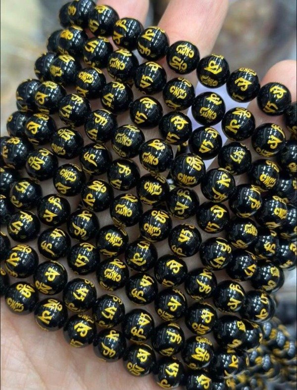 PULSERA ELÁSTICA DE OBSIDIANA NEGRA TIBETANA