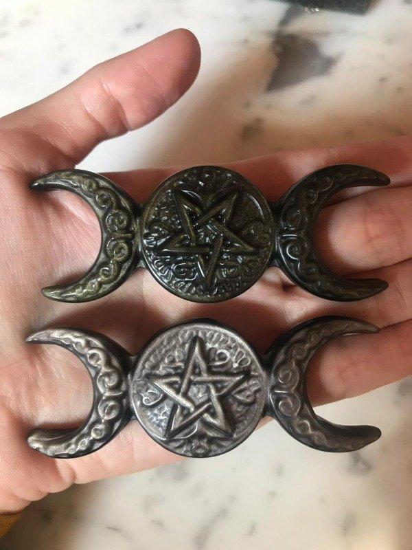 TRIPLE DIOSA LUNAR OBSIDIANA PLATEADA