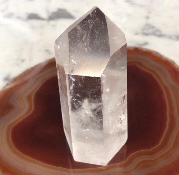 Punta Maestra de Cuarzo Cristal con increíble pulido en cada una de sus aristas. Calidad Premium. Origen Brasil. Medidas: 9,5 de alto x 4 cm de base. Peso: 255 gr.