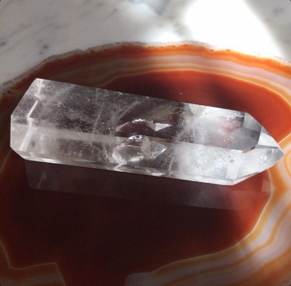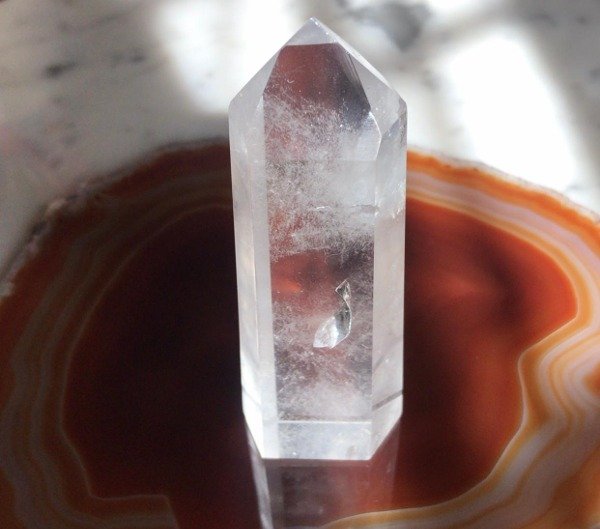 Punta Maestra de Cuarzo Cristal con pulido a mano en cada una de sus aristas lo que le da una terminación impecable. Medidas: 10 cm de alto x 3,5 cm de base. Peso: 125 gr.