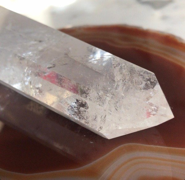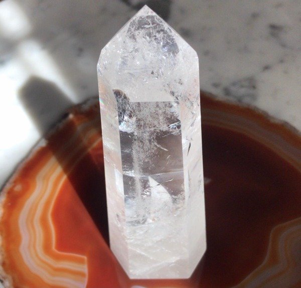 Punta Maestra de Cuarzo Cristal con pulido a mano en cada una de sus aristas lo que le da una terminación impecable y arcoíris en su interior. Medidas: 12,3 cm de alto x 4 cm de base. Peso: 199 gr.