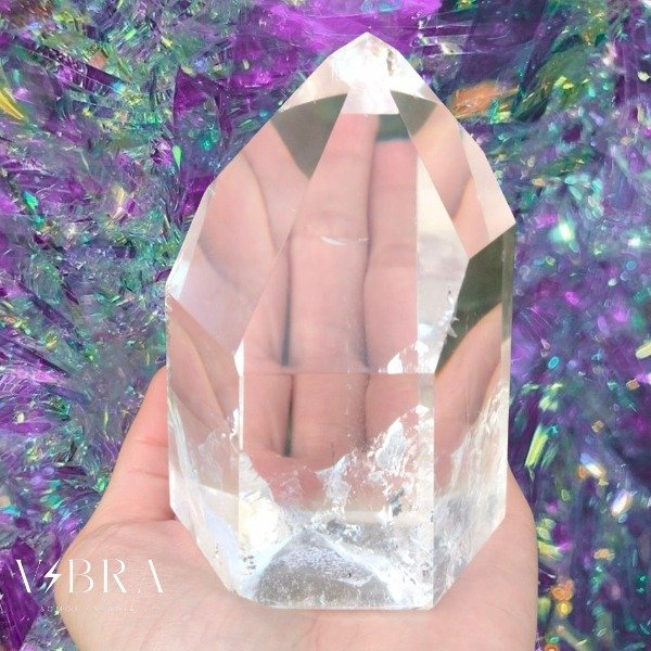 Pieza maestra de Cuarzo Cristal totalmente pulida a mano con una terminación impecable. Calidad extra premium cristalina y pura en su interior. 100% cristal. Medidas: 11 cm de alto x 6 cm de base. Peso: 508 gr.