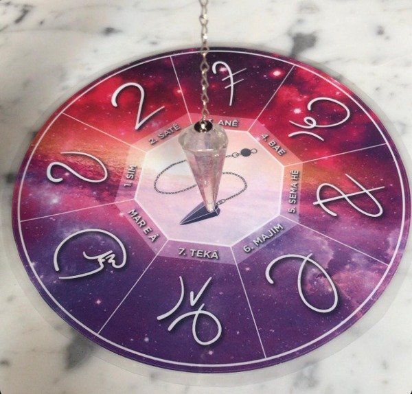 Grilla de testeo Tameana para nivel inicial Salush Nahí. Con esta grilla podrás identificar rápidamente qué escala vibracional trabajar en sesiones individuales. Incluye Péndulo de Cuarzo Cristal. Medidas: 18 cm de diámetro. Realizada en papel autoadhesivo de alta calidad y plastificado.