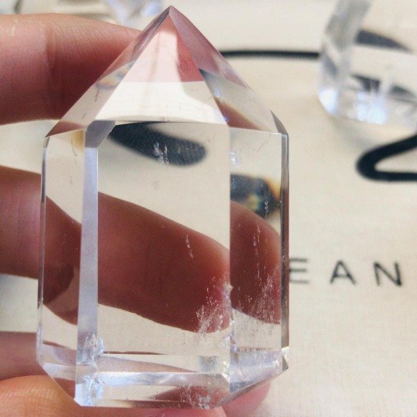 Incluye 6 piezas de cuarzo cristal de la medida de 4 a 4,5 cm con base totalmente pulidas en cada una de sus aristas, lo que le da una terminación impecable. Origen Brasil + 2 turmalinas negras en bruto de 4 cm.