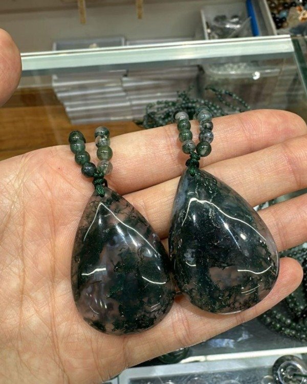 COLGANTE GOTA DE ÁGATA MUSGOSA REGULABLE