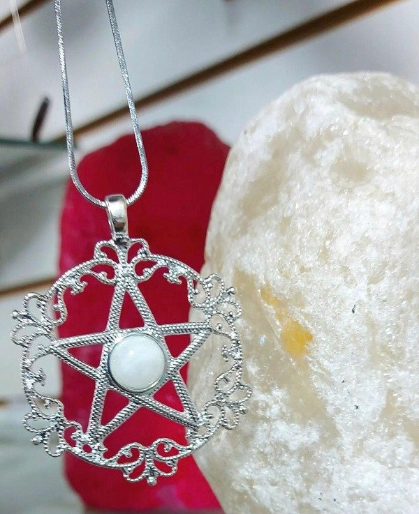 Incluye dije de plata con piedra natural de cuarzo blanco + cadena de acero blanco.