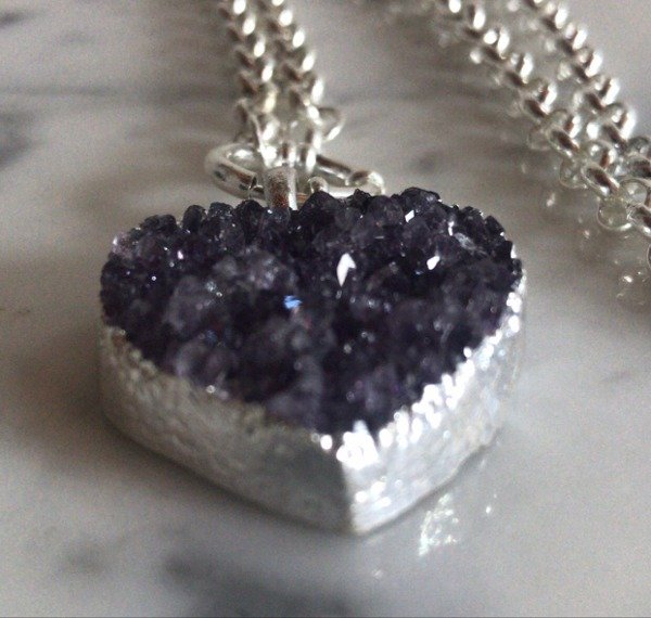 DIJE DRUSA DE AMATISTA+CADENA CON CIERRE MARINERO 6MM-50 CM EN ACERO BLANCO.