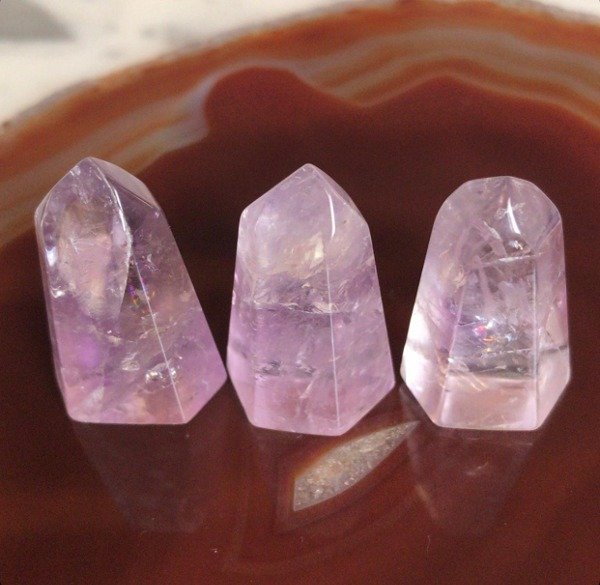Kit de Obeliscos de Amatista de 3 a 3,3 cm. Incluye 3 piezas pulidas.