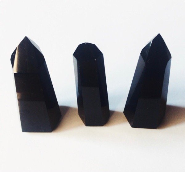 KIT DE 3 PIEZAS DE OBSIDIANA NEGRA NATURAL DE 6 A 6,5 CM DE ALTO. PULIDO A MANO EN CADA UNA DE SUS ARISTAS LO QUE LE DA UNA TERMINACIÓN IMPECABLE. CALIDAD PREMIUM,