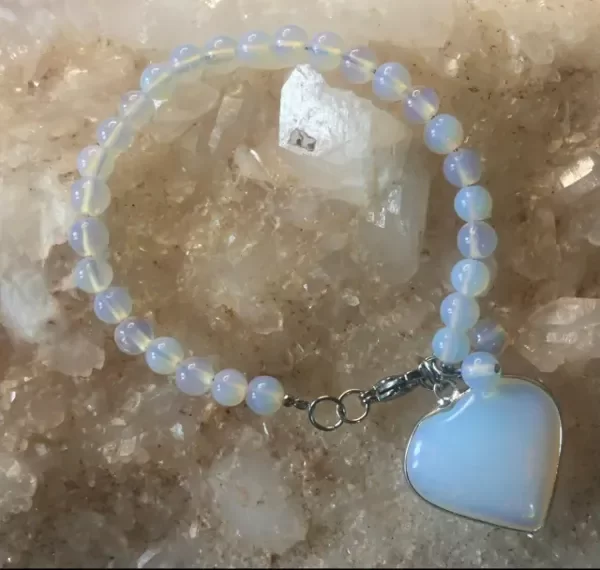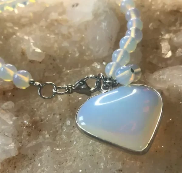 PULSERA CONFECCIONADA EN BOLITAS Y DIJE DE OPALINA TOTALMENTE NATURAL Y ACERO QUIRÚRGICO. ES INOXIDABLE-HIPOALERGENICO-NO MANCHA-NO PIERDE EL COLOR.