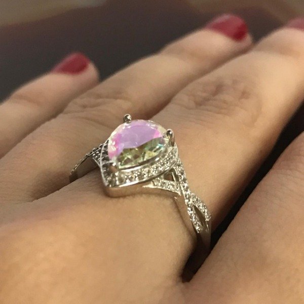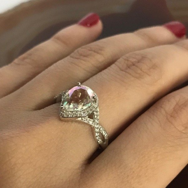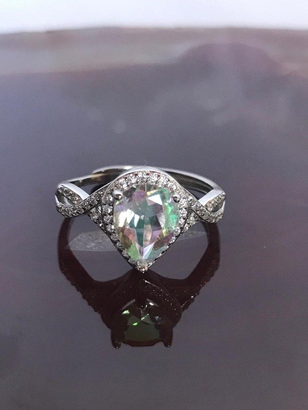 Confeccionado en Plata 925 con piedra facetada de Cuarzo Aqua Aura 100% natural.