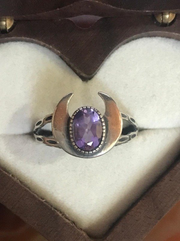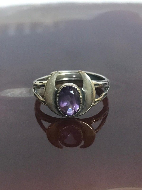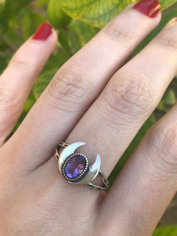 ANILLO MEDIA LUNA CON PIEDRA FACETADA DE AMATISTA
