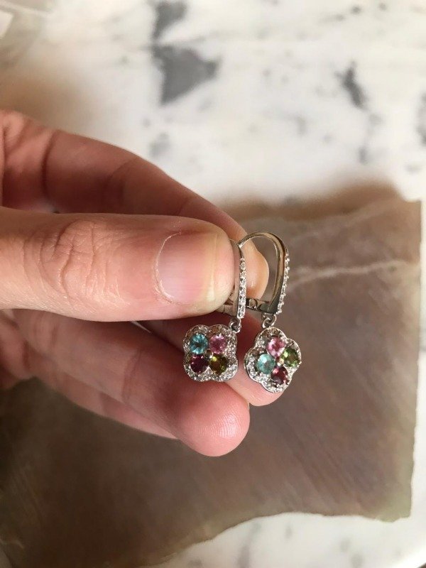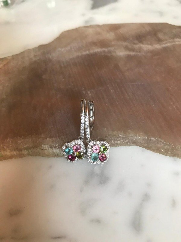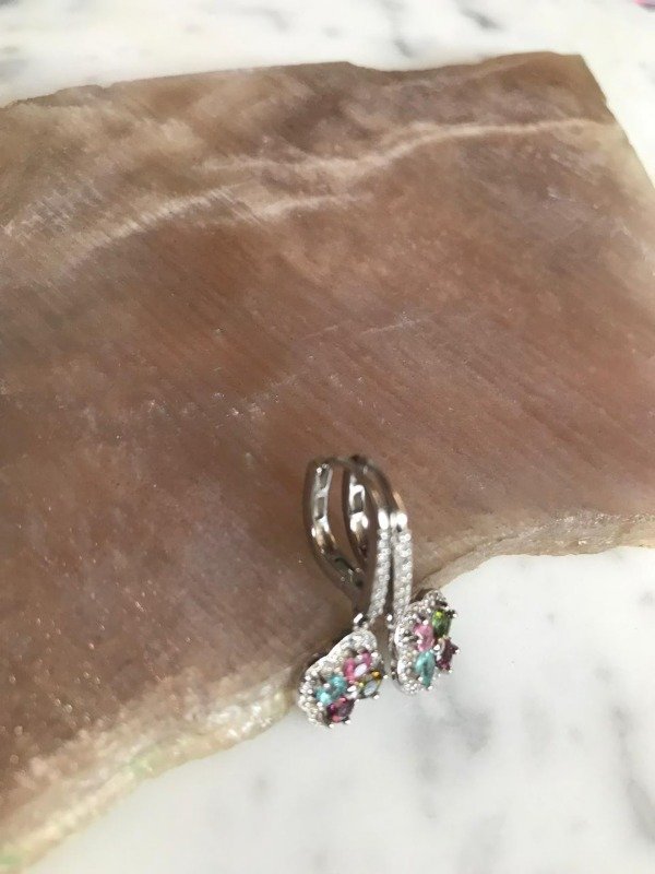 AROS FLOR DE TURMALINAS DE COLORES FACETADAS EN PLATA 925