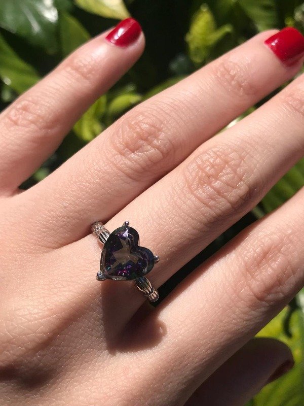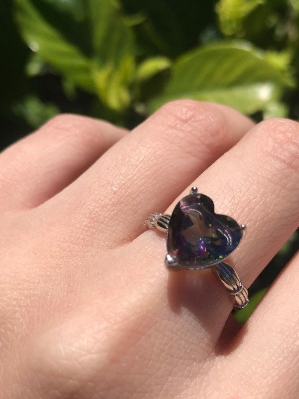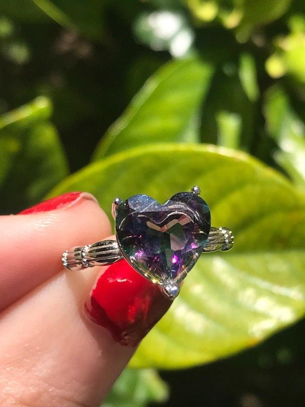 ANILLO CON PIEDRA EN FORMA DE CORAZÓN TOPACIO MÍSTICO