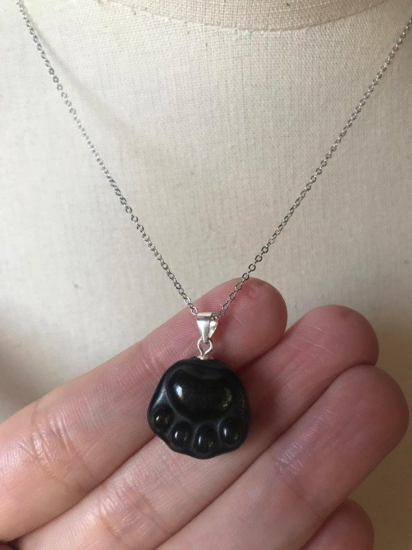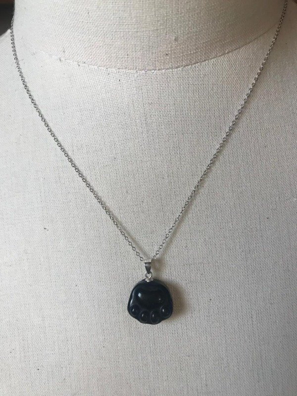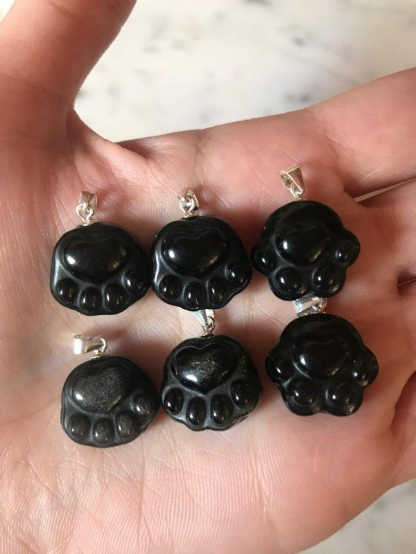 DIJE HUELLITA OBSIDIANA PLATA 925
